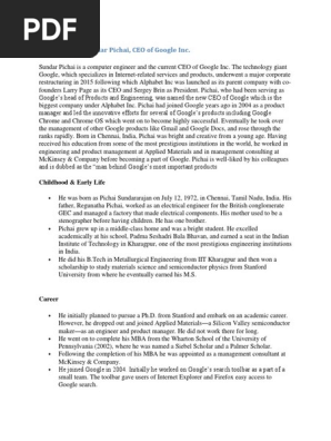 Biography Of Sundar Pichai Pdf Alphabet Inc Information Retrieval Organizations